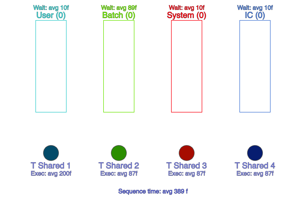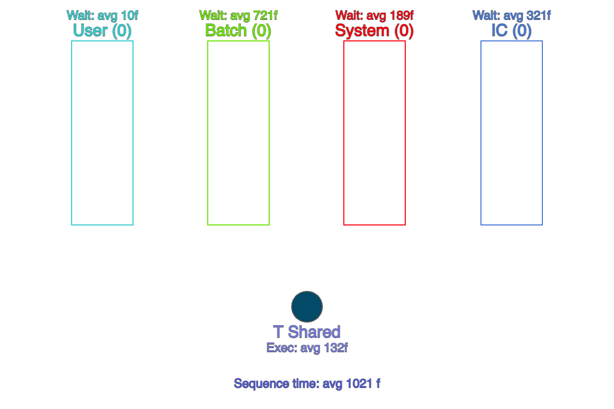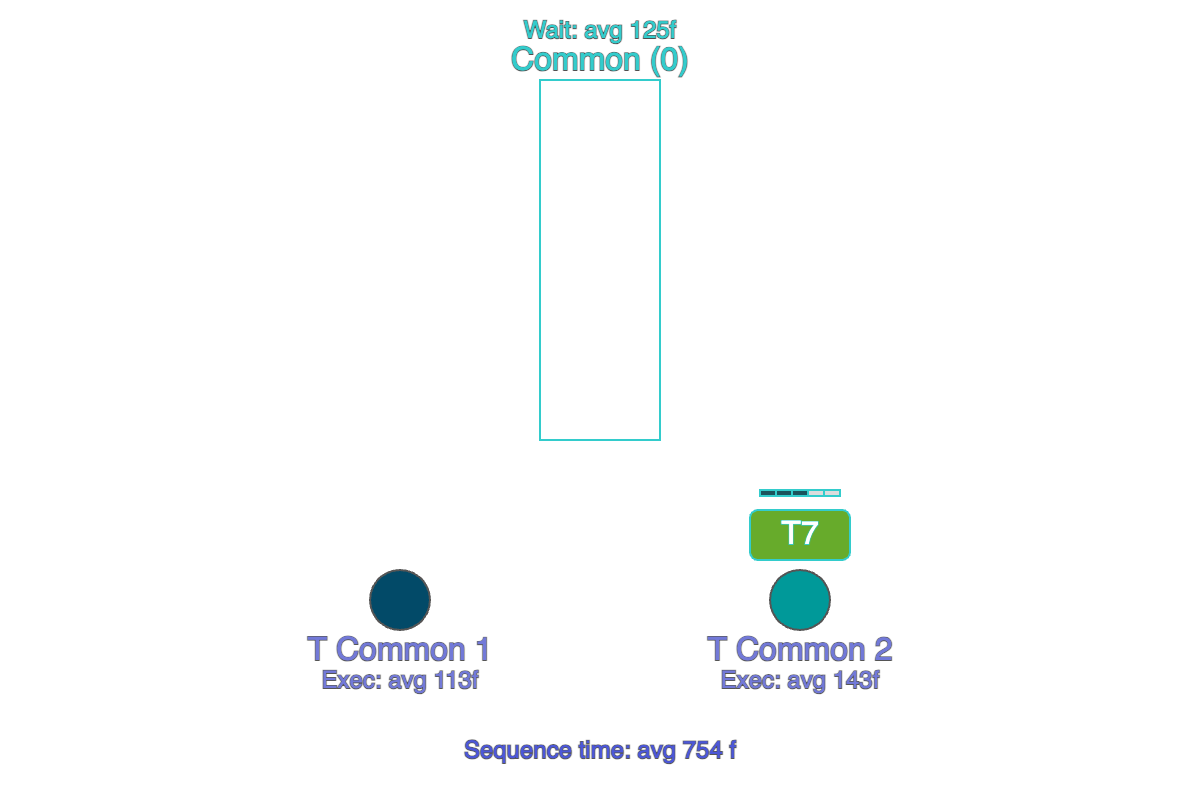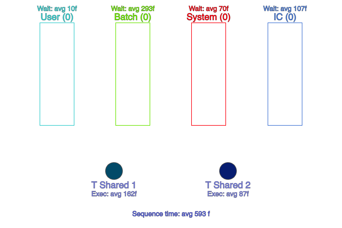 В демонстрациях мы замеряем время последовательности (Sequence time) — время от появления задачи в User-пуле до выполнения последней созданной задачи в IC-пуле (показано внизу анимации).