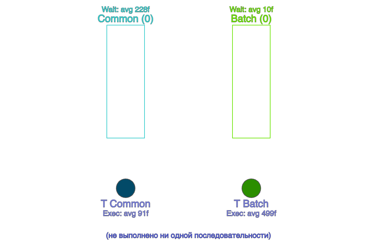 В наивной реализации задачи Batch пула могли бы постоянно откладываться, но наши общие потоки гарантируют выделение каждому пулу процессорного времени. В какой-то момент попадётся «неудачный» запрос, который столкнётся с Batch-задачей, но в среднем баланс справедливый.